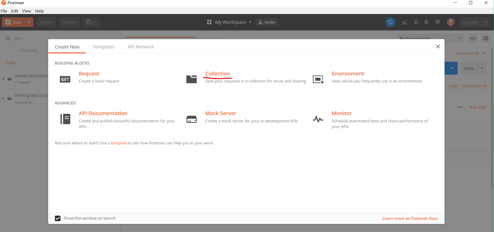 创建测试集合管理测试用例,输入测试名称以及描述
