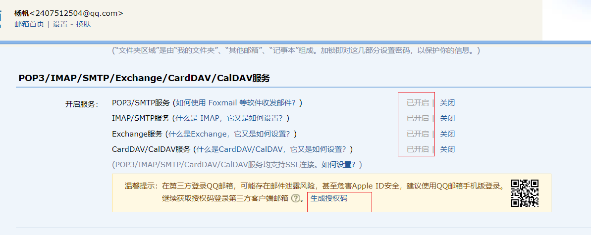 Password:【需要去qq邮箱-》这是-》账户-》开启服务->生成授权码,密码就是授权码】